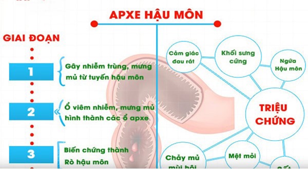 Bệnh apxe hậu môn hình thành qua 3 giai đoạn nhận biết rõ rệt: